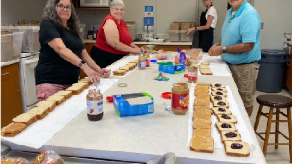 So Shirley called an emergency meeting of the committee right after church. We looked at our funds and decided we had enough money in our Local Missions account to buy enough shelf-stable canned hams, instant potatoes, packets of gravy mix, canned beans and corn, and small desserts for the 140 food bags.